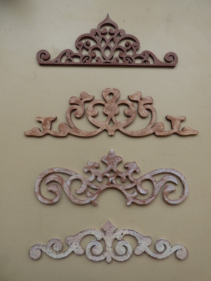 Estos son algunos de los nuevos copetes de madera que podéis encontrar en la tienda on-line. Son de 20 cm de ancho y nos pueden servir para decorar montones de cosas.....cajas, muebles, cuadritos, estantes...todo lo que se nos ocurra.