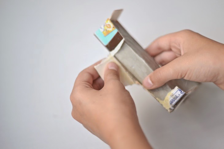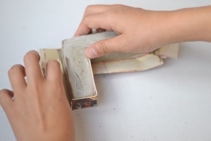 Los laterales del molde los he pegado con celo. Es importante untar nuestro molde con vaselina, para que el cemento se desmolde fácilmente.
