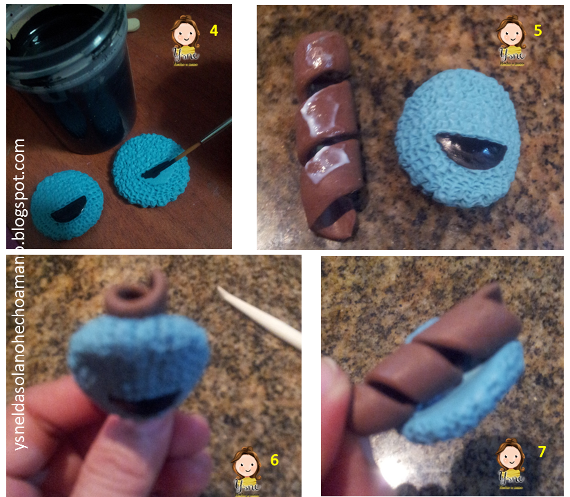 Y mi persona, que les presento, como realizar estos sencillos apliques con las caritas de este monstrito azul, muy útiles para decorar infinidades de objetos y realizar diferentes detalles, de hecho estaba tan indecisa en la propuesta a realizar, que fui desde la idea de pendientes o zarcillos hasta decorar un cofre.