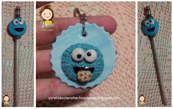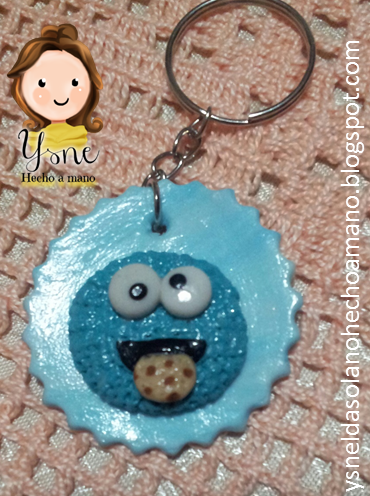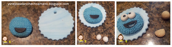 Paso a Paso Fotográfico de la decoración de llavero - Monstruo de las galletas en porcelana Fría