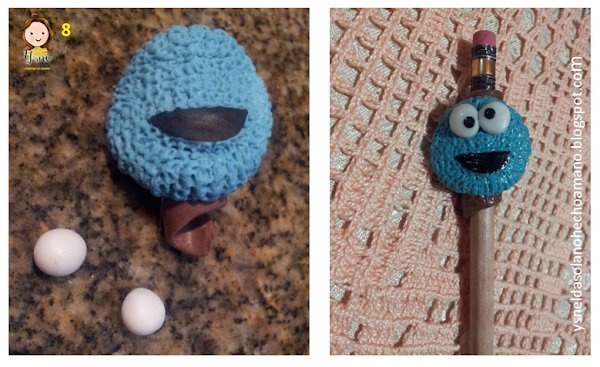 Paso a Paso Fotográfico de la decoración de lápiz - Monstruo de las galletas en porcelana Fría