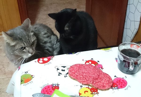 Me levanto un minuto de la silla.....vuelvo a la cocina y ya hay dos interesados en mi desayuno.....y yo sin silla!