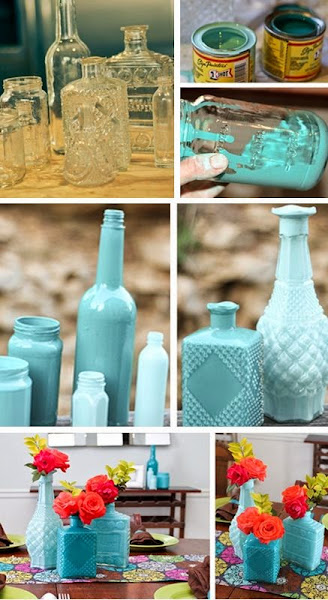 Aquí les traigo una idea para reciclar las botellas que ya no vamos a utilizar;con sólo agregar pintura en el interior y esperar a que seque tendremos unos detalles decorativos muy bonitos!!
