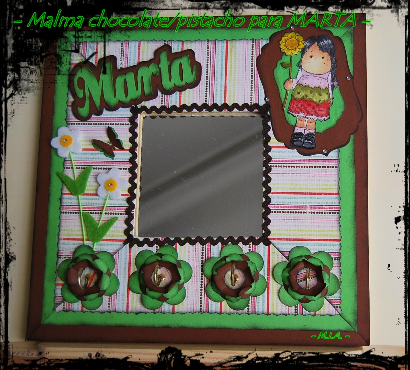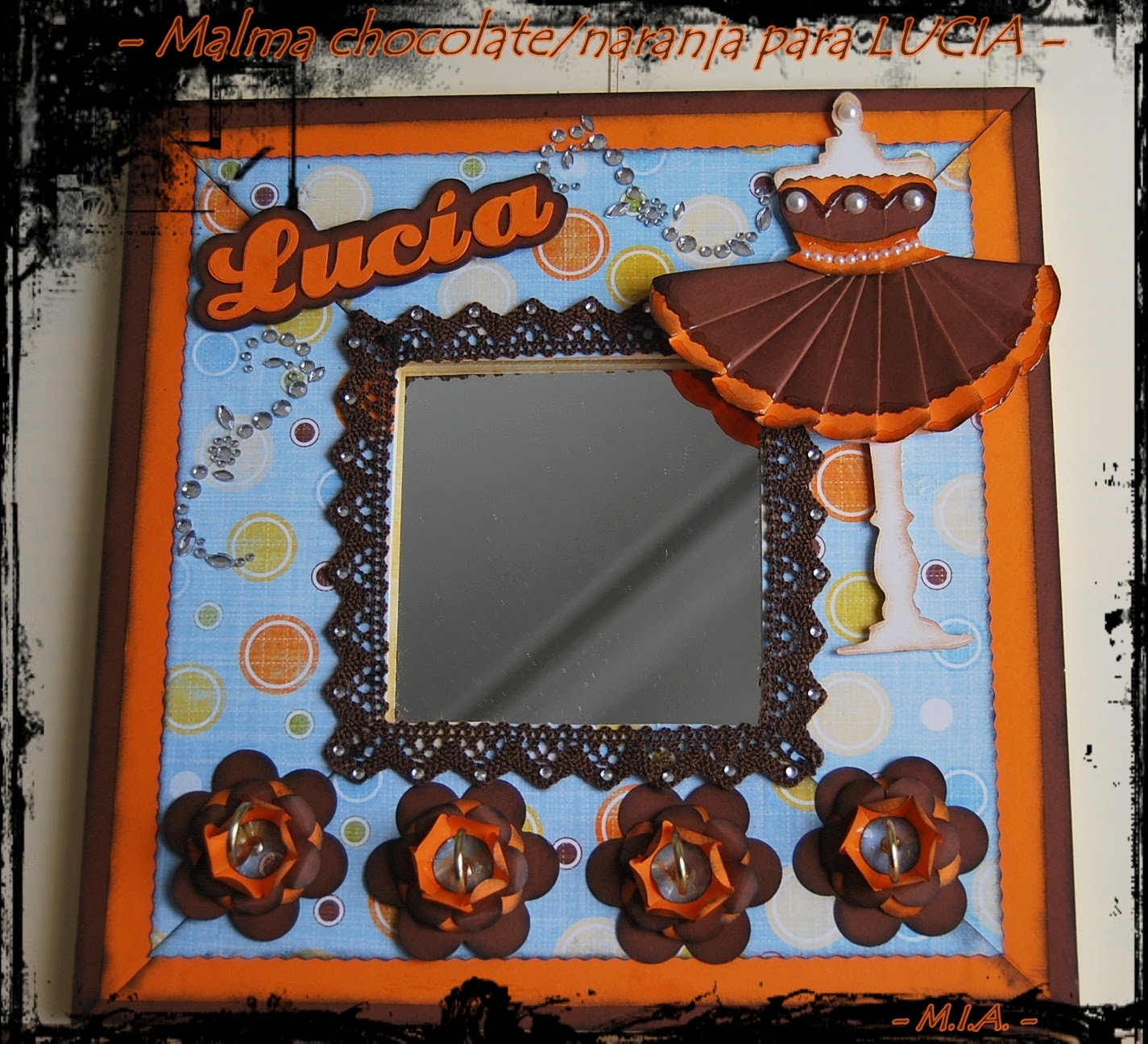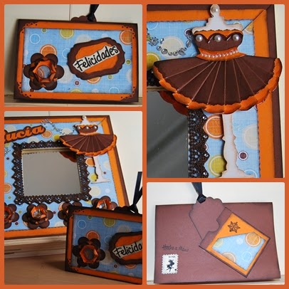 Esta vez he combinado con marrón chocolate como color base, para combinar con verde pistacho y naranja. Las flores están hechas con troqueladoras Artemio de silueta de flores. Los nombres están cortados con la craf varias veces para pegar y dar volumen.