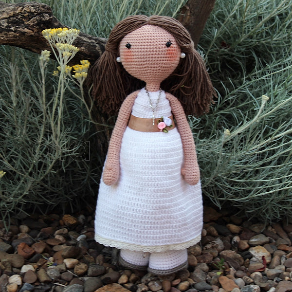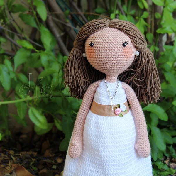 Os enseño en primer lugar la muñeca vestida de Primera Comunión: