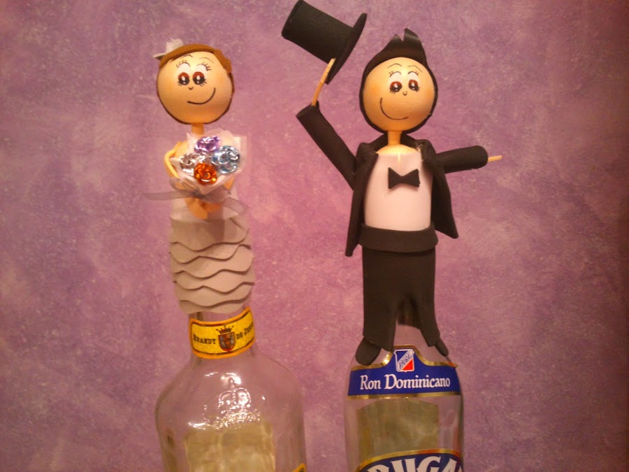 Me gustan mucho las muñecas fofucha, y en esta ocasión, prepare unos novios, para una pareja que quiero mucho, y os enseño la foto de como quedaron el día de la boda A los novios les encanto!!! Son muy importantes los detalles tanto para el novio, como para la novia , las gafas, el ramo, el velo, el collar, los pendientes... Los uní con el corazón, de corcho forrado de goma Eva con purpurina para ...