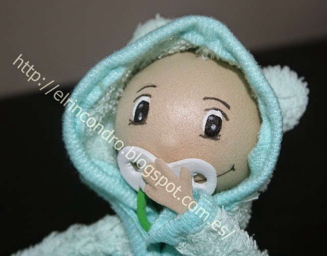 El pantalon de la niña está pintado a mano y el albornoz del bebe está cosido a mano