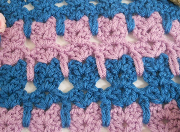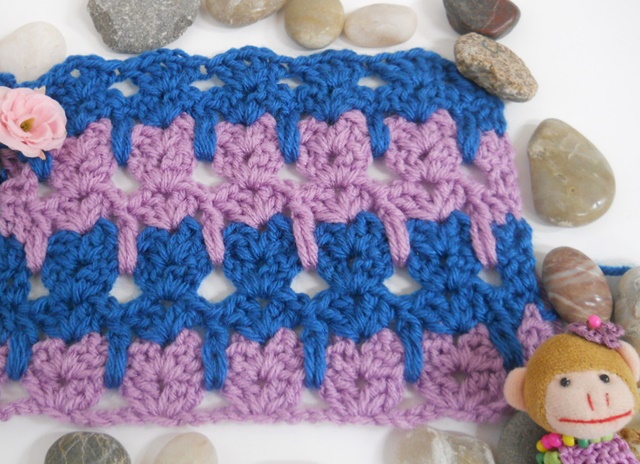 La puntada se hace así: *un punto bajo en la hebra trasera, un punto bajo enmedio del siguiente punto bajo*, repetir. Bien fácil!. Espero te gusten y las utilices.