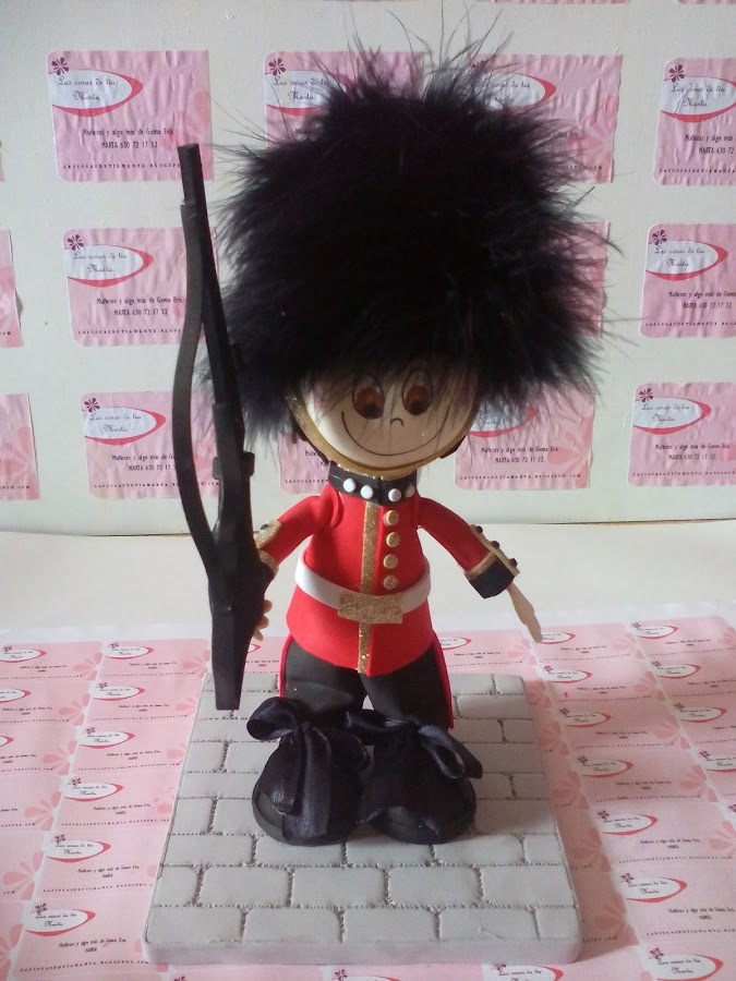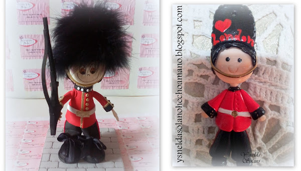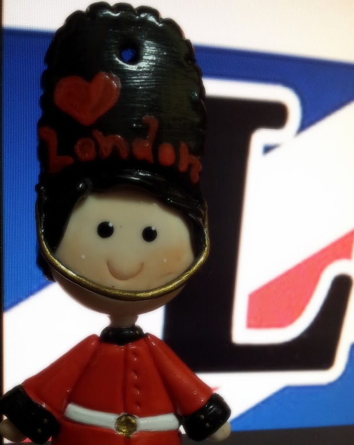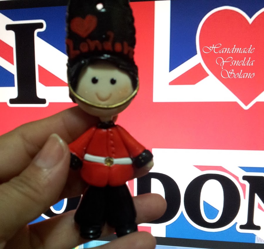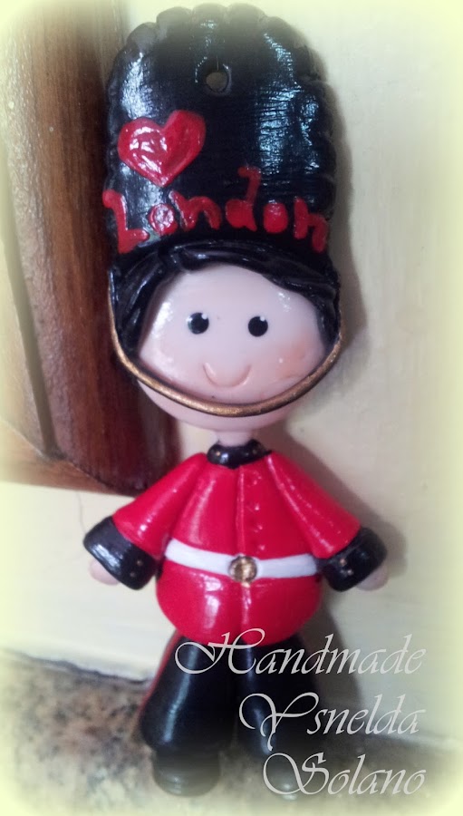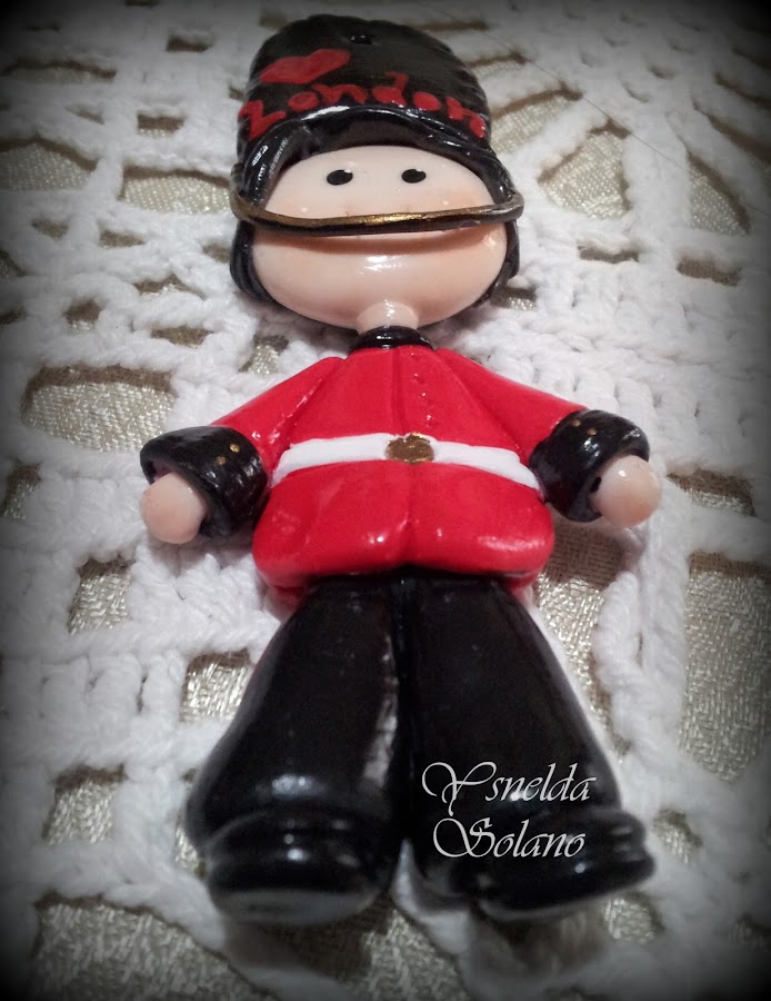 Como pueden observar le realicé un pequeño orificio, en la parte superior a la figura, es porque pienso convertirlo en llaverito, por cuestiones de tiempo, me queda pendiente para otra entrada. Les dejo con algunas fotos que se tomó mi presumido Bebé Guardian Londinense :D :D.