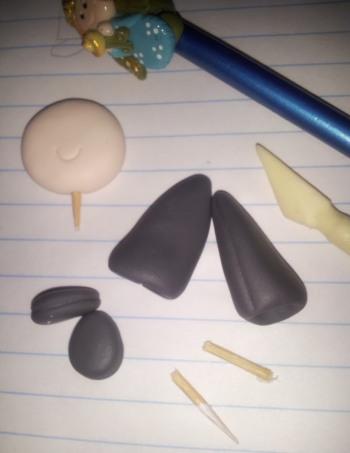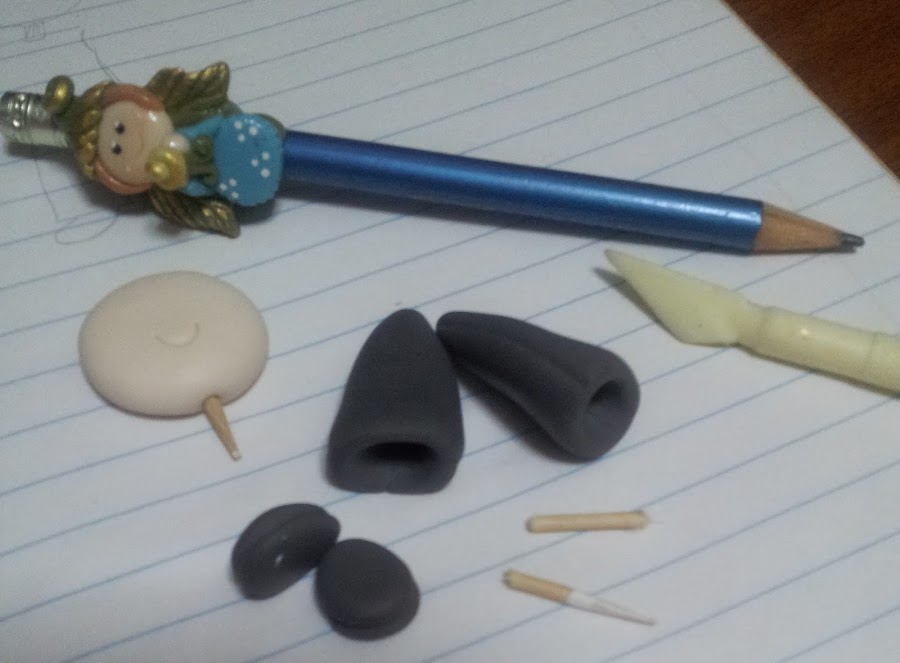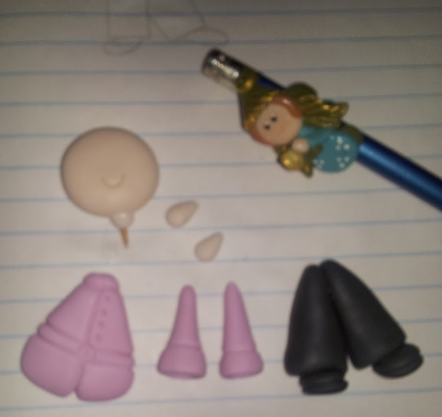 1.- Primero realicé un boceto a lápiz, para guiarme con los tamaños de las piecitas. Empezando por: cara, pantalones y zapatos.