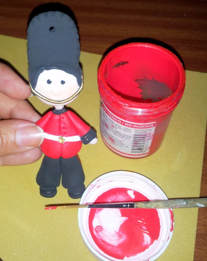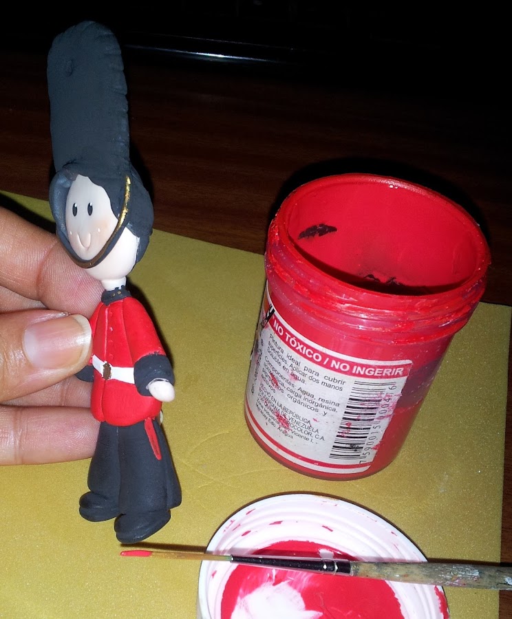 Paso a paso fotográfico de Soldado de Londres, en porcelana fría (mi masa flexible):