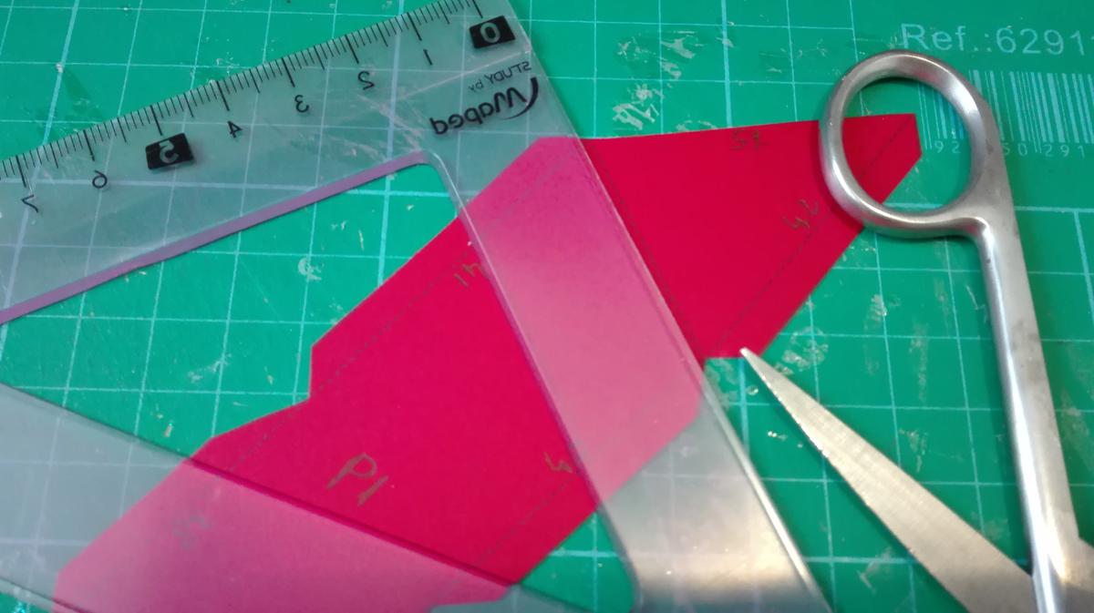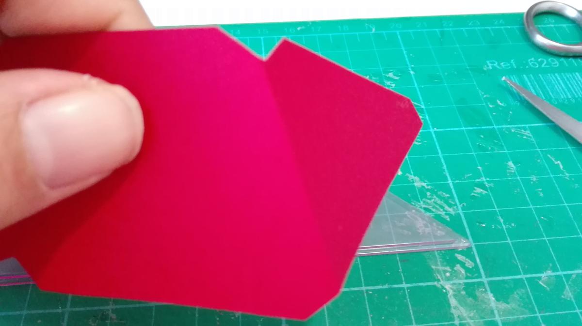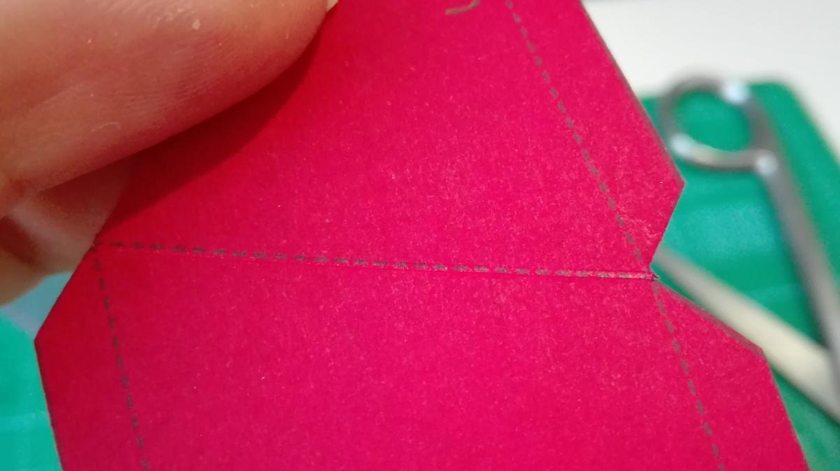 Para doblar la cartulina si no tienes ninguna herramienta para facilitar el doblado, solo necesitas una regla y con la punta de las tijeras lo marcas, con cuidado que no queremos romper el papel.