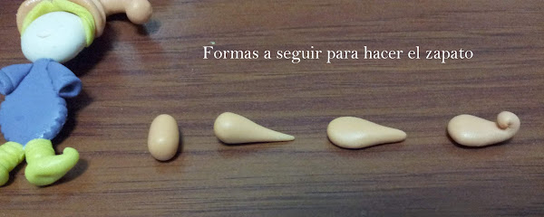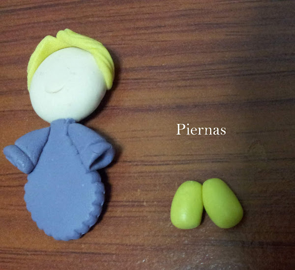 Las piernas son dos rollitos de porcelana fría, se marcaran lineas con la esteca , para simular las medias.