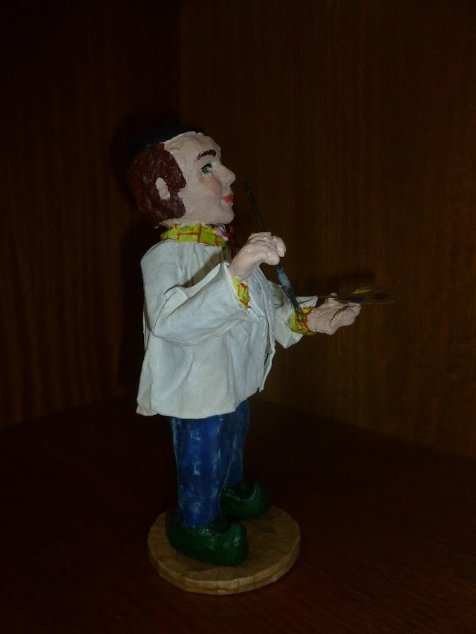 Realizado con Papel periódico y Papel machè. Pintado con pinturas acrílicas.