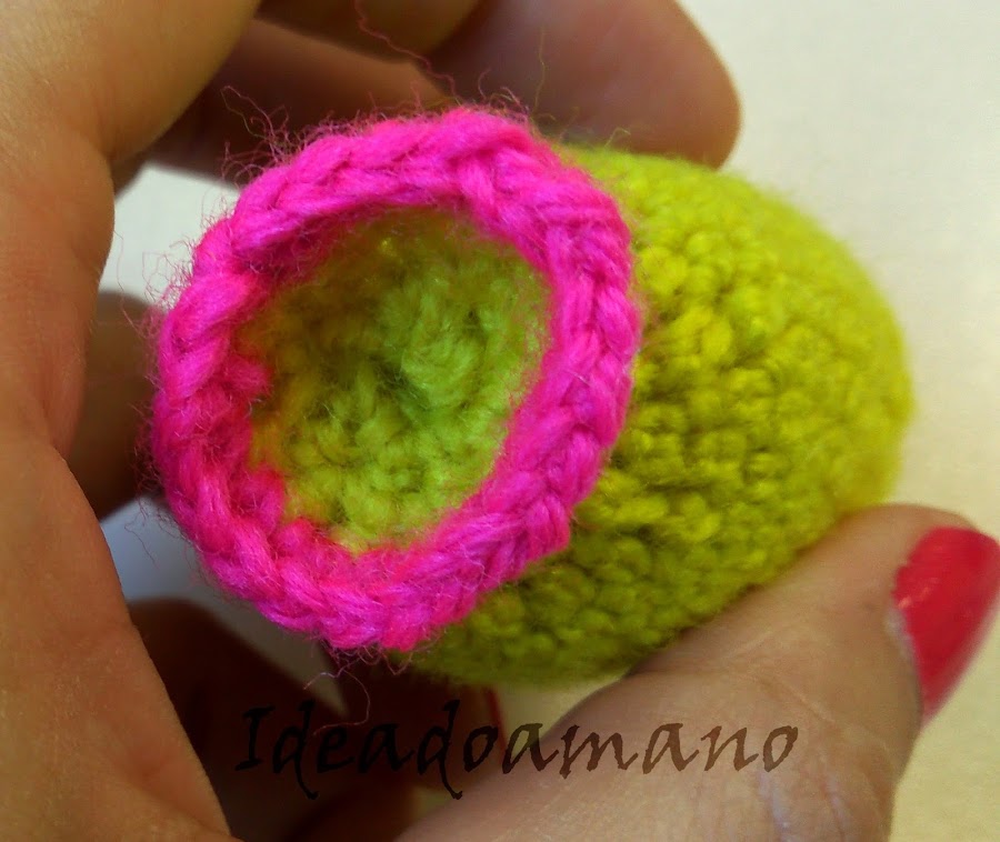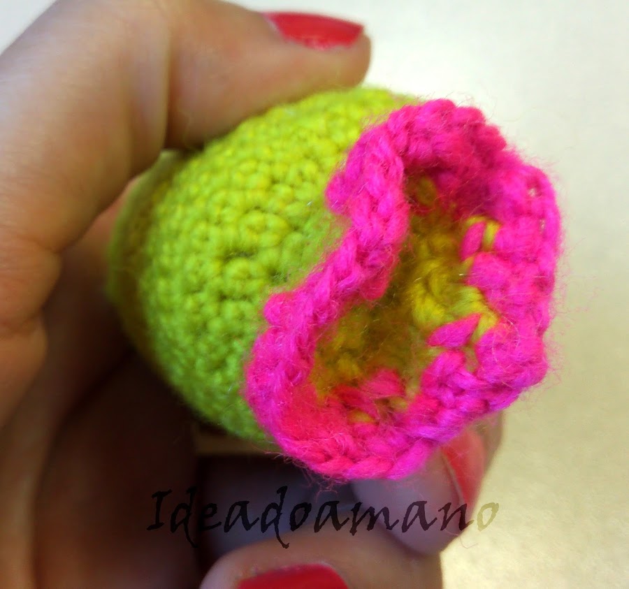 vueltas 8 a 19: cd 24pb se cierra con pr (24). El número de vueltas dependerá de lo alargado que queramos el caramelo.vuelta 20: cd *1rd, 2pb* se repite y se cierra (18)