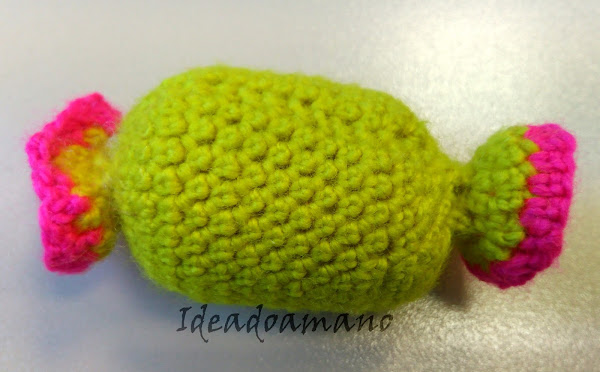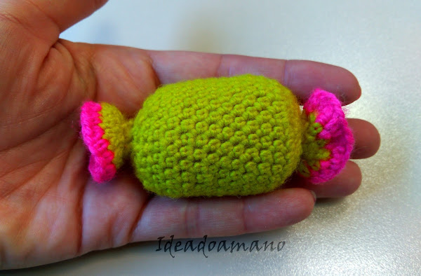 La cosa vino porque un día hablando las "pulpitas" empezamos a ver caramelos de ganchillo y como somos muy de querer todo lo que vemos empezamos a pensar en cómo se harían.. y yo que sólo había hecho a mi azucarillo me ví hasta capáz de intentar este caramelo.. así que me puse a ello.. Y salió!!!