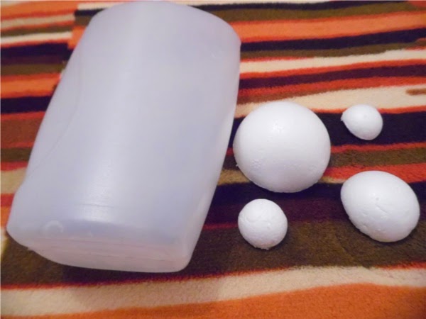 Primero le quitamos el plástico al bote y lo cortamos con mucho cuidado masomenos a la mitad. Todas las bolas de unicel las cortaremos a la mitad también. De la grande y la mediana solo ocuparemos la mitad así que con una bola podemos hacer dos dulceras.