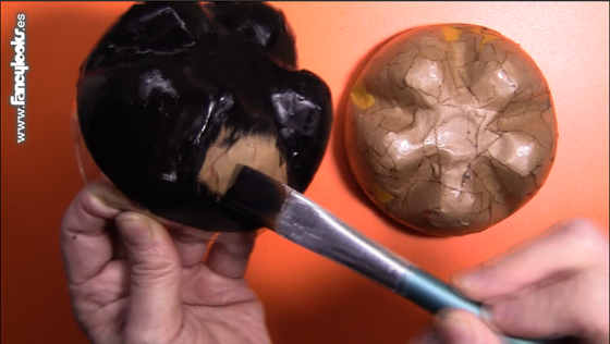 4. Pinta las dos mitades cubiertas con papel de pintura acrílica negra. Deja secar