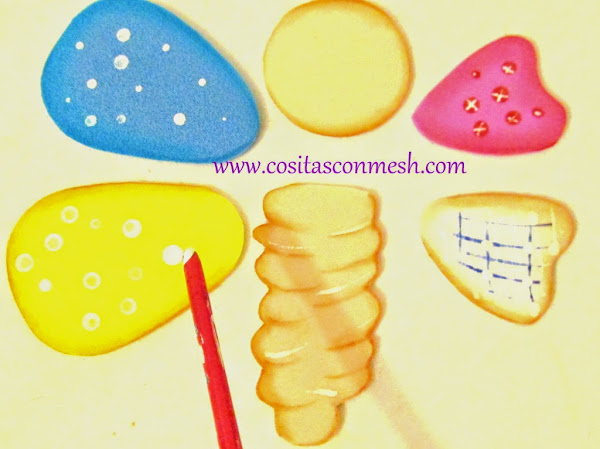 7.-Decoramos los moldes de foamy con plumones y haré puntitos y rayitas con pintura acrílica blanca,roja (usa la pintura que tengas a la mano).
