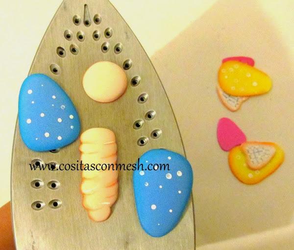 8.-Ya decorada mis moldes de foamy,procedo a termoformar ,es decir pongo sobre la plancha semi caliente las piezas y cuando empiecen a inflarse las saco.