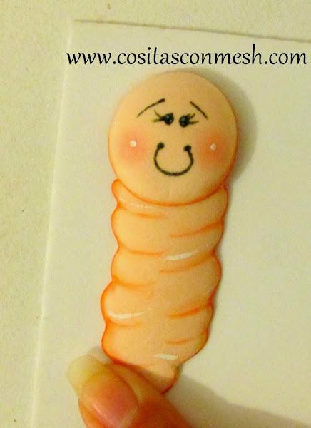 14.-Con la limpiapias o chenille ,hago las antenitas y las pego detrás de la cabeza.