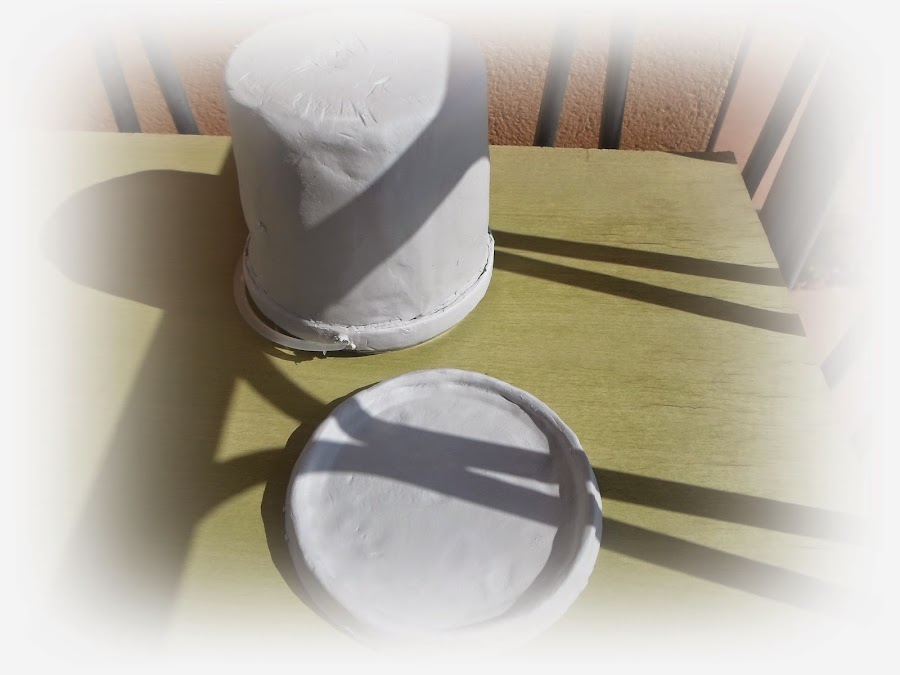 vamos a comenzar viendo lo que mide nuestro tarrito reciclado y lo taparas o forraras con la pasta de modelar todo, si es de una pasta seca trabajala con un poco de agua..