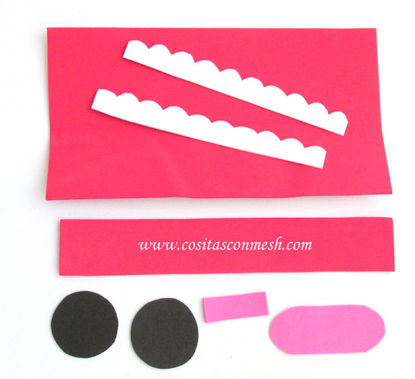5.-Ahora cotare 2 tiras de foami blanco, imprime los moldes que te deje.