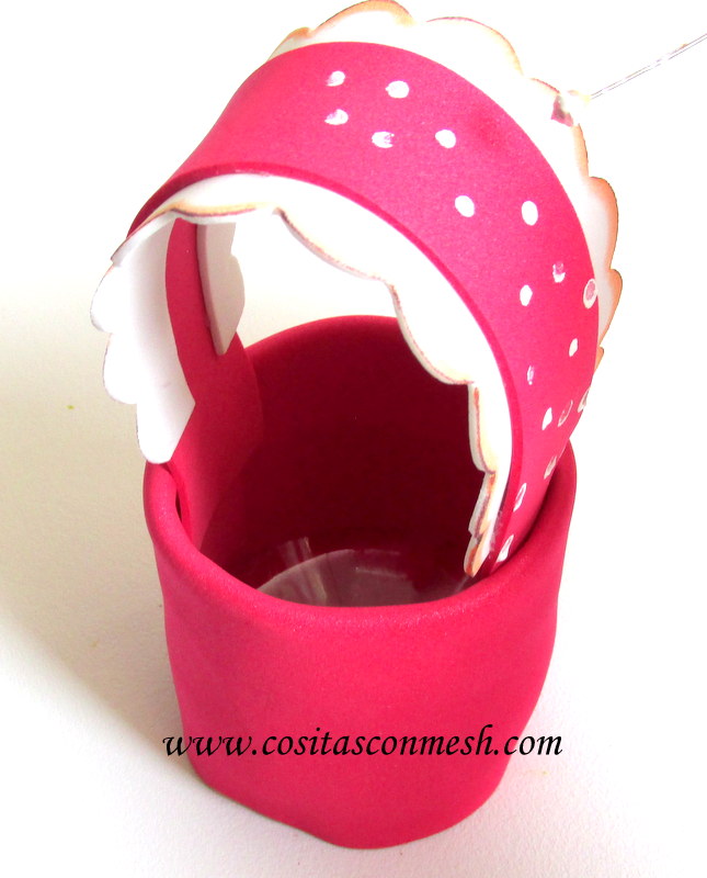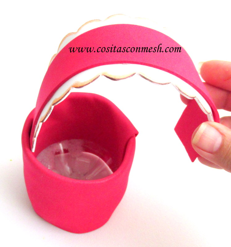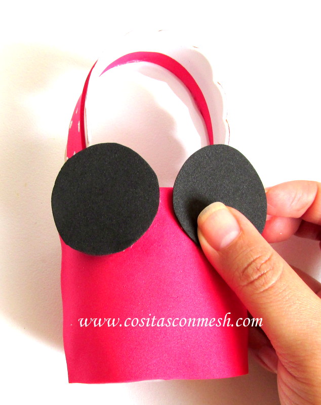 6.-Pegamos la asa por dentro de la canastita dulcero de Minnie-mouse.