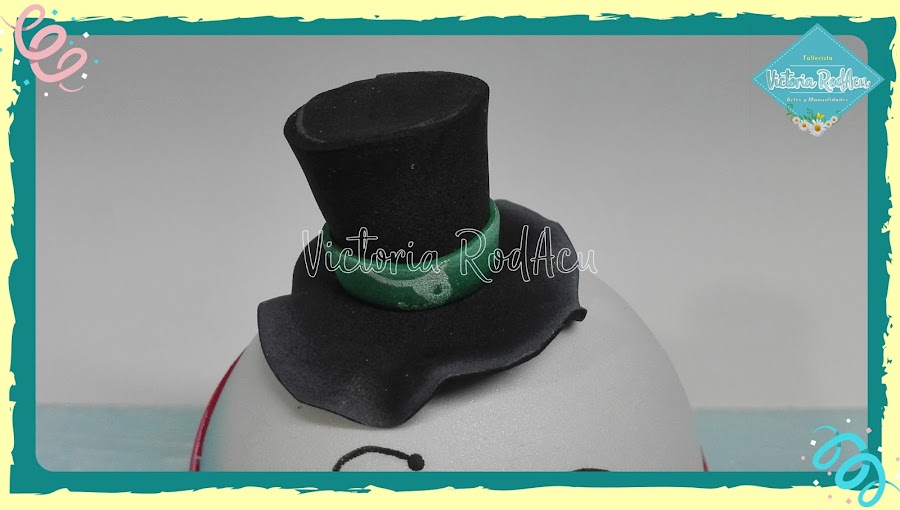 El sombrero es de copa y tiene una cinta como detalle decorativo, pero tu le puedes agregar más aditamentos.
