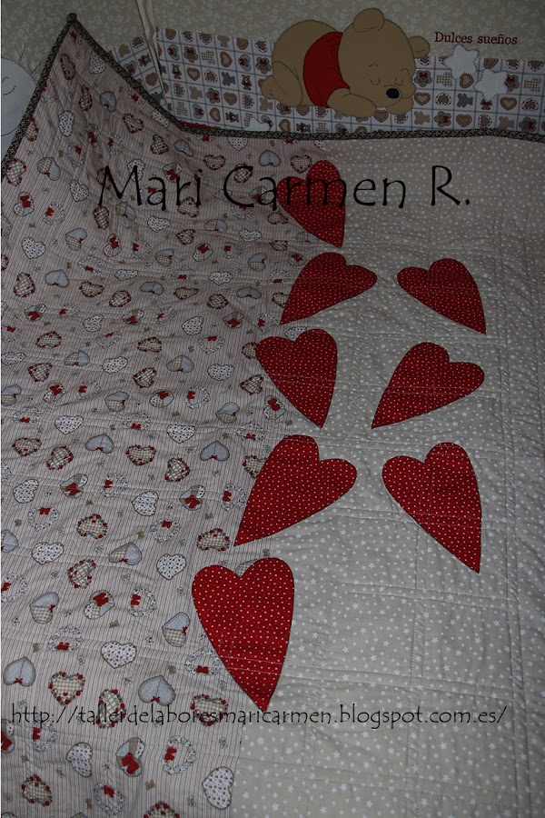 con dos bordes, aplicaciones, bies y acolchada.