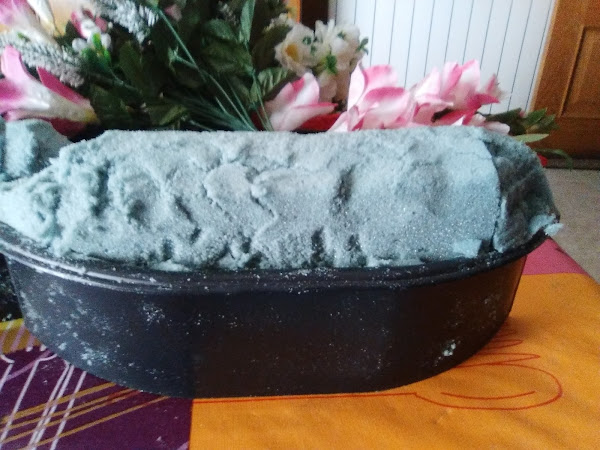 hay que rellenar el total del recipiente, yo voy a provechando los recortes mientras le voy dando forma a la esponja.
