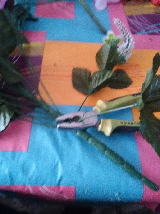 ahora queda lo que menos me gusta, el ir cortando los ramos ramita a ramita, os recomiendo usar unos alicates buenos, y aun asi si teneis que cortar una gran cantidad, usad unos guantes para evitar q os salgan ampollas o os hagais daño