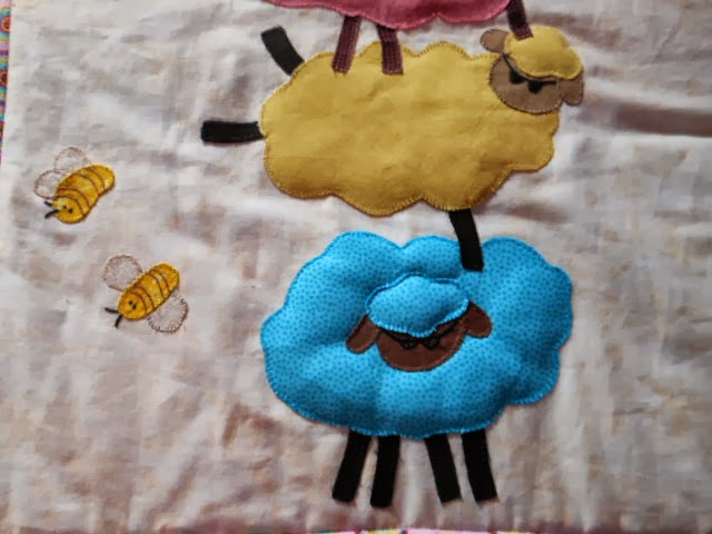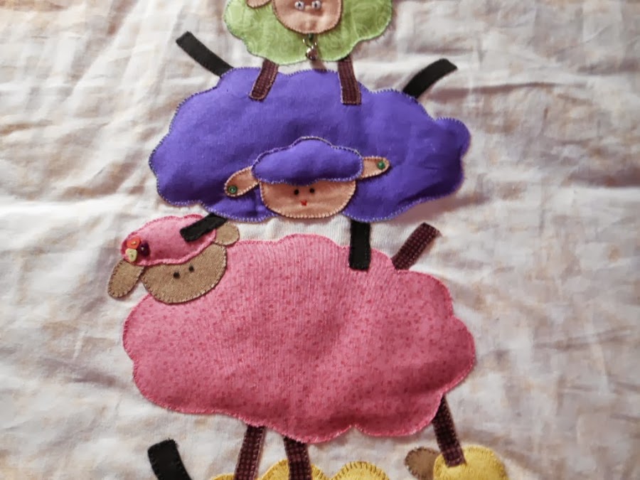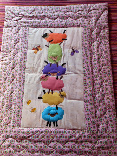 Bueno,pues a lo que ibamos, a presentaros este edredón infantil, que es un encargo de una pareja muy querida por mi, que se ha ido nada menos que a Italia,es para una bebita italiana, espero que les guste mucho a sus papas, porque la parejita ha elegido con mucho cariño las telas y también los dibujos aplicados de las ovejitas que encontraron por la red.