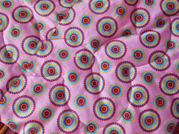 detalle del acolchado de la esquina, es la 1ª vez que me he atrevido a acolchar a máquina (pero con la pata normal)
