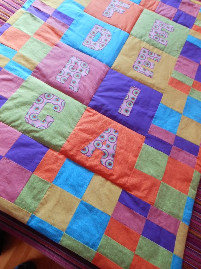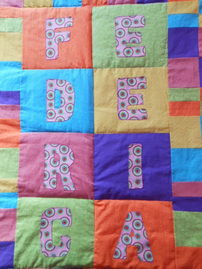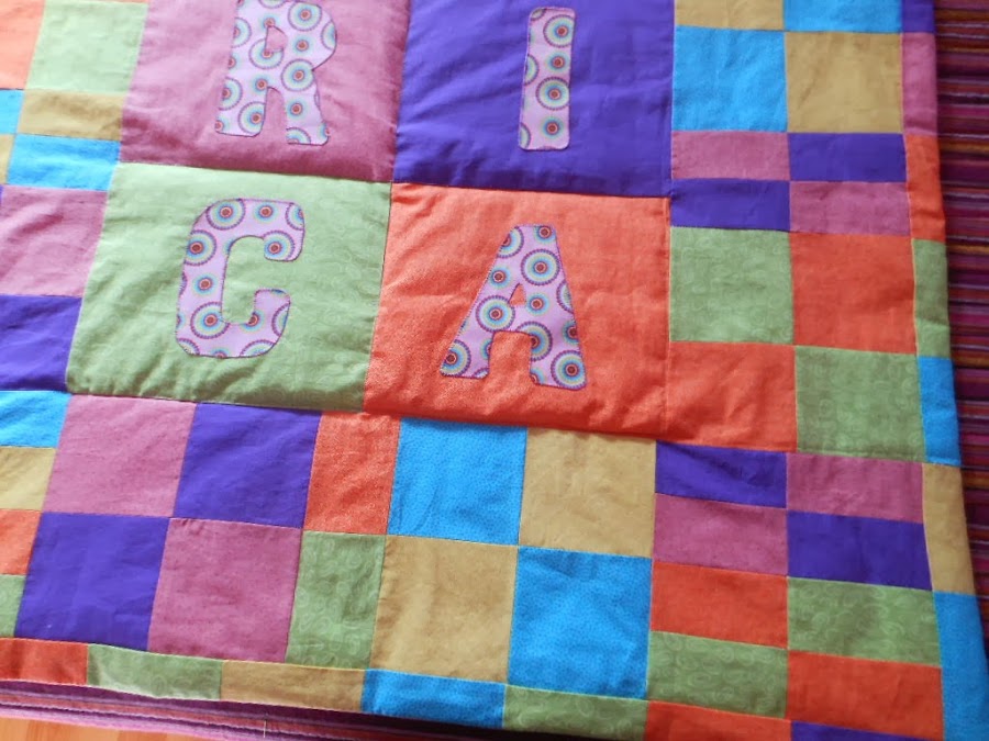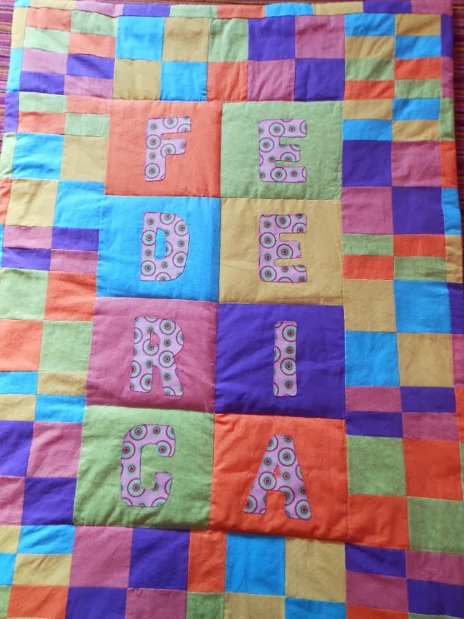 Ahora viene el reverso del quilt, que han elegido poner el nombre de la niña, FEDERICA y aprovechar