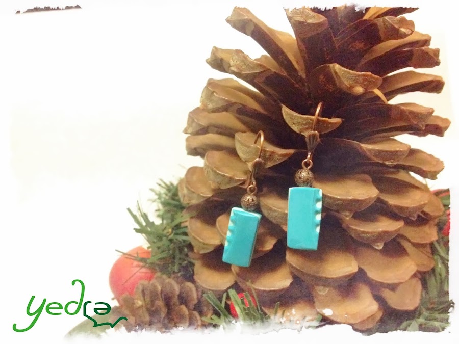 Pendientes rectangulares turquesa marrones