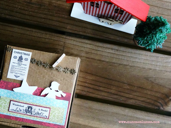 Una caja pequeña de cartón de color craft, decorada con unos papeles de scrap navideños y algún detalle más y lo tenéis hecho. Es fácil, resultón y abulta poco, ¿qué más se puede pedir?