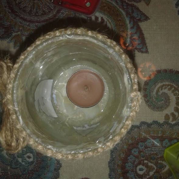 Introducí una vela pequeña dentro del bote.