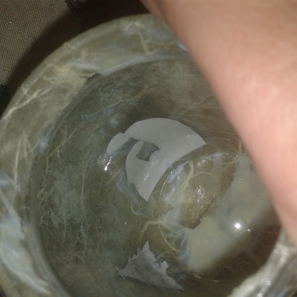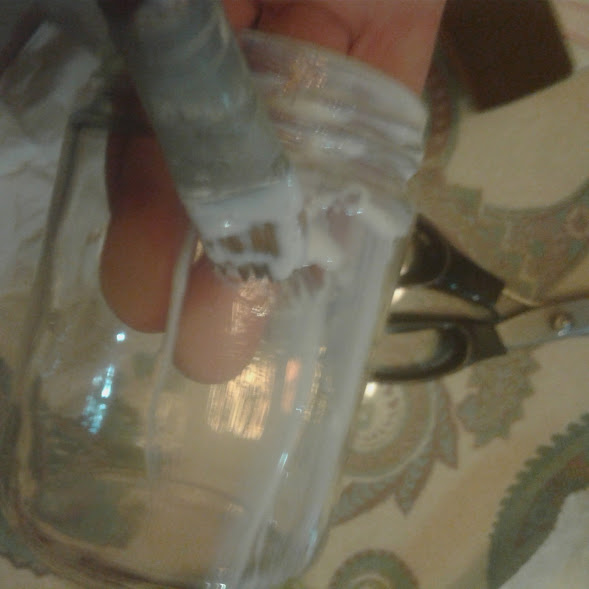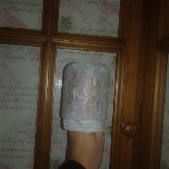 Apliqué el pegamento en el bote de cristal y fuí pegando el papel