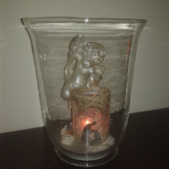 O un portavela de cristal con el fondo de arena