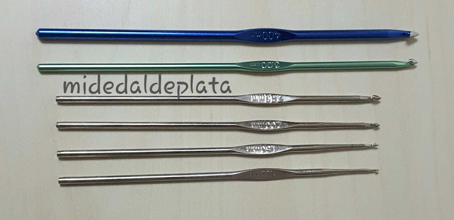 Agujas de ganchillo que Juanfran limó para transformarlas en ganchos de urdir flecos.
