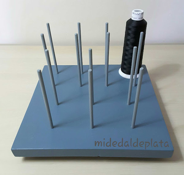 Tarima para albergar bobinas de hilos de distinto grosor, según mi diseño en la servilleta de un bar.