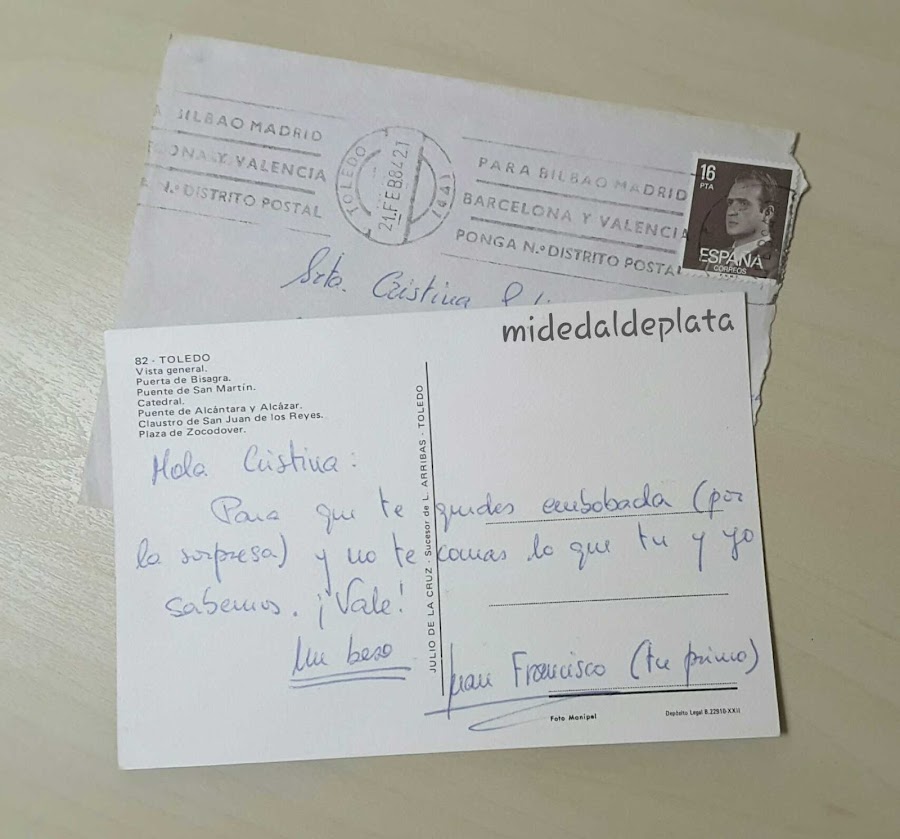 Juanfran me envió una postal desde unas maniobras en Toledo, siendo yo una niña.