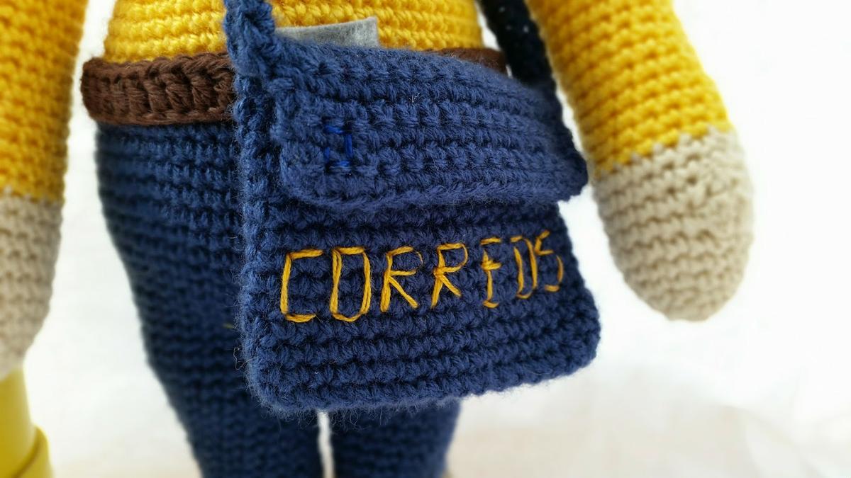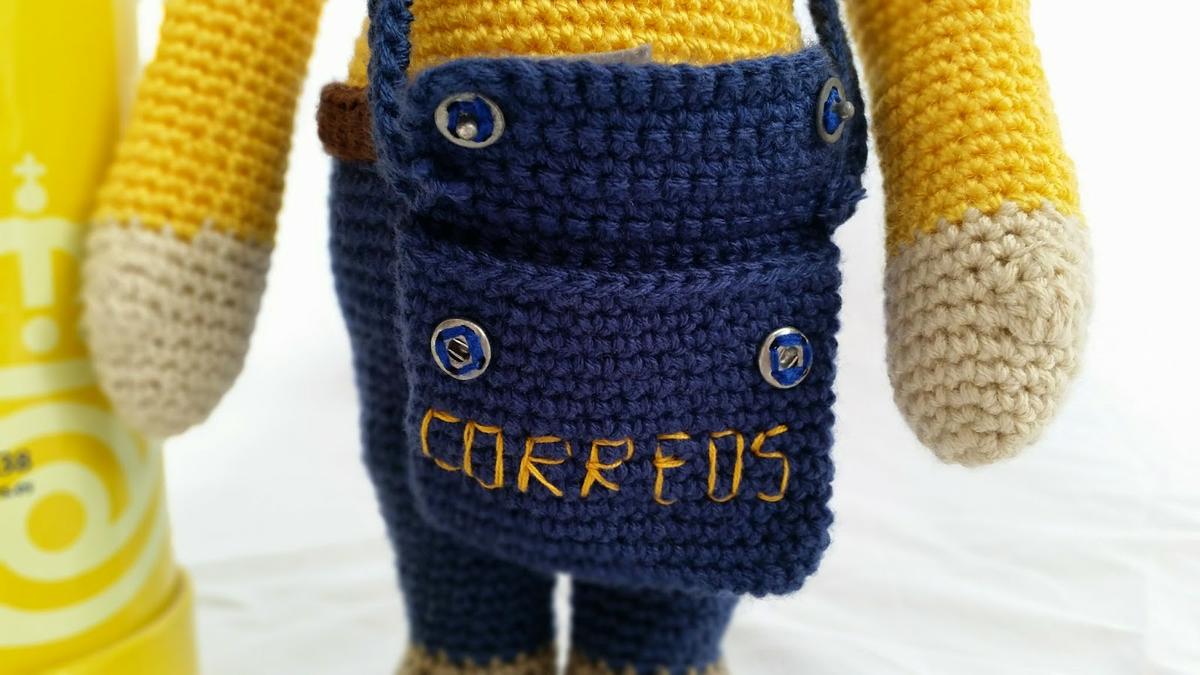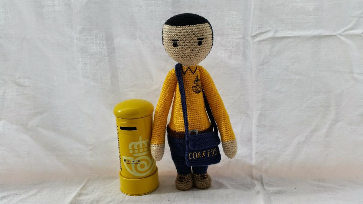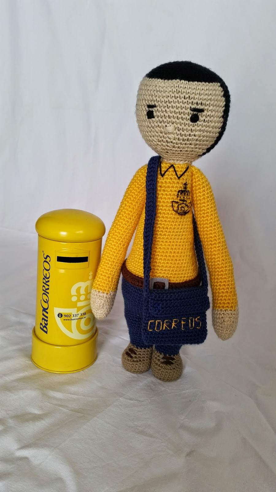 El cartero del pueblo, amigo de la familia, me pidió hace un par de semanas que le hiciese un amigurumi caracterizado como un cartero ¡mi primer encargo personalizado!