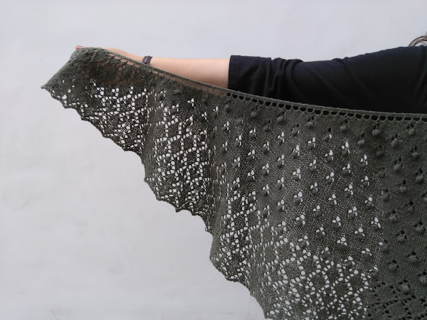 Este chal me ha puesto a prueba, es la primera vez que manipulo a propósito un diseño calado, o varios en este caso, para que se ajusten a mis necesidades. Además de tejer con bodoques, una experiencia nueva y terrorífica a priori, que en poco tiempo acabó siendo adictiva.
