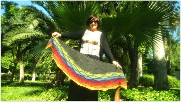 Tras cálculos, hacer y deshacer....comenzamos a tejer y no, no es nada dificil. Usa vuelta acortadas para hacer las olitas con lo que lo hace muy entretenido y la verdad es que una vez superados los inicios donde maldecimos a la diseñadora una y otra vez, cogimos carrerilla tejiendo y lo acabamos pronto.