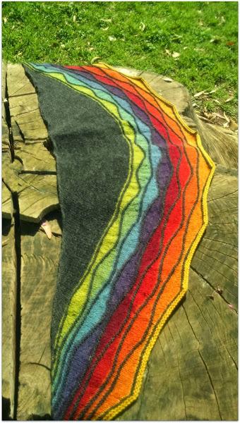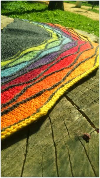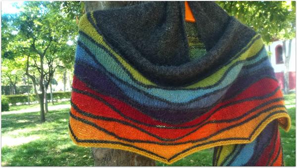 Este es el patrón Light waves y la lana que utilicé fue la kanui effecyarn por supuesto porque aunque me parece muy áspera (sobretodo al lado de la alpaca gris) los colores son tan espectaculares que merece la pena.
