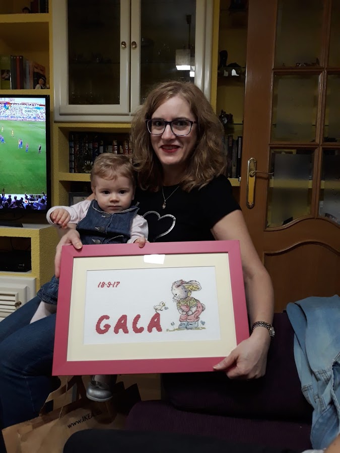 Y aquí mi chiquitina con su cuadro, que no lo quería soltar la jodía jajajaja.