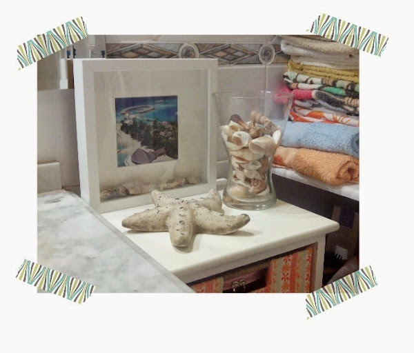 Solo necesitamos el marco, una imagen que nos guste y unas chuminaillas para rellenar, de hecho en Ikea venden unos paquetitos con algunos detalles marinos, pero yo tengo conchas a punta pala, y esas concretamente, me acompañan desde hace años, me refiero a las que se ven desgastadas por la erosión, formaron parte de mi acuario hasta que decidimos cambiar el ambiente... las adoro!!