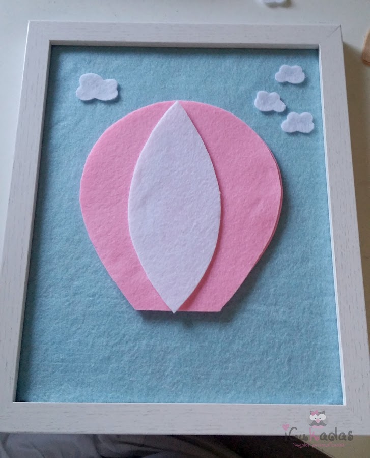 A veces estos cuadros llevan detalles en tela, otras veces combino tela y fieltro, pero esta vez es entero de fieltro, me parecía mejor así.
